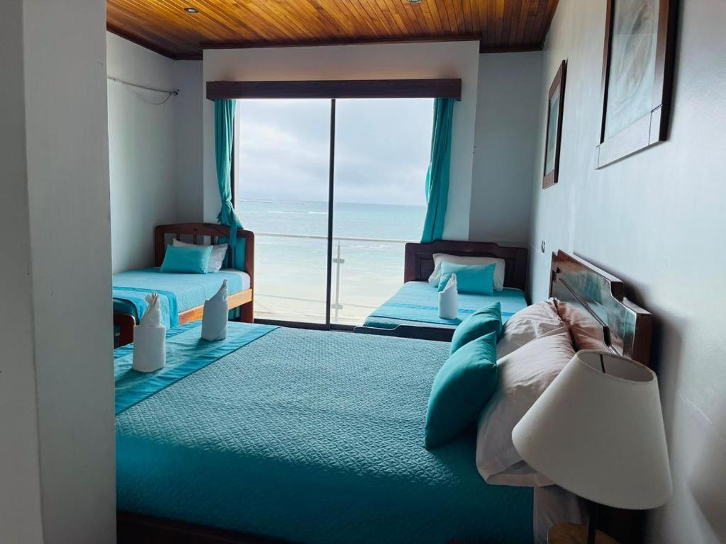 Un ambiente tranquilo a pie de la playa, limpio y seguro. Tenemos un dispensador de agua todo el tiempo y area social. Los hospedajes se encuentran en un segundo y tercer piso, y para acceder necesitan subir escaleras.